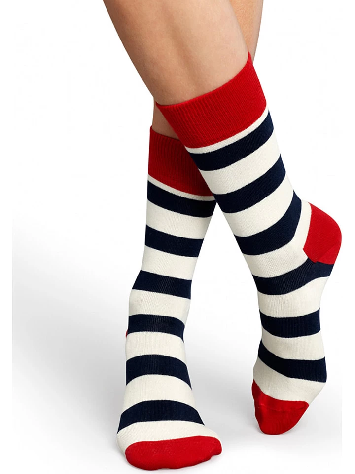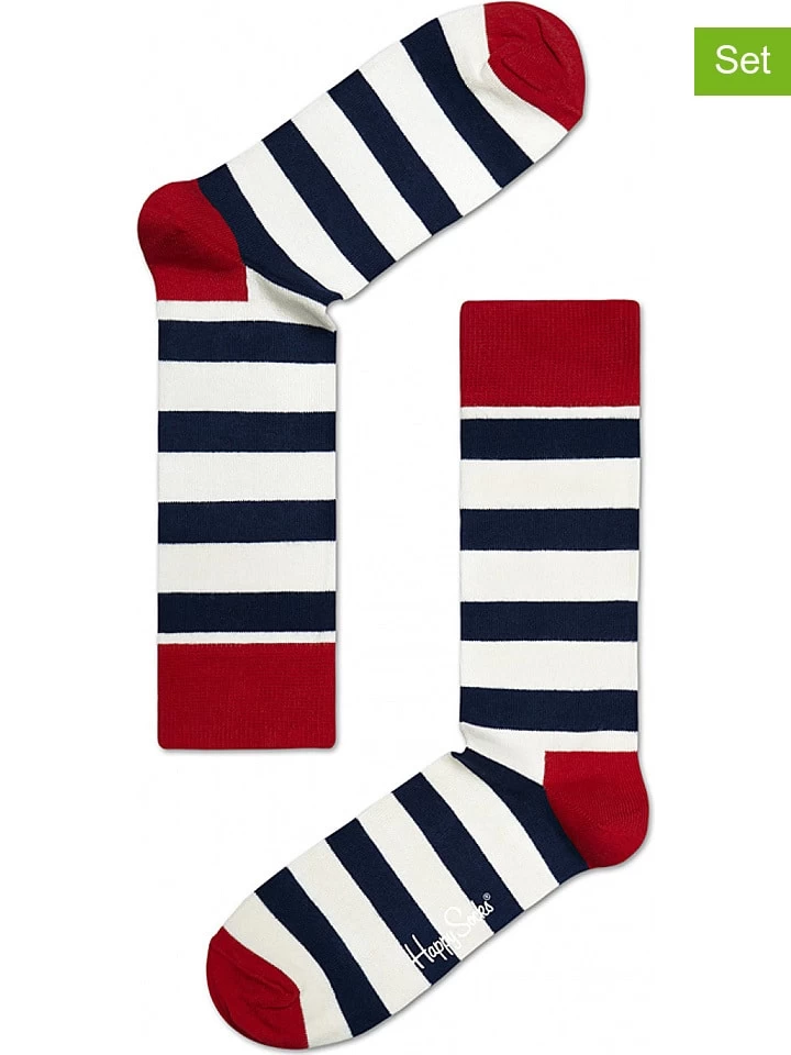 Happy Socks 2er-Set: Socken „Stripes“ In Weiß/ Rot/ Schwarz