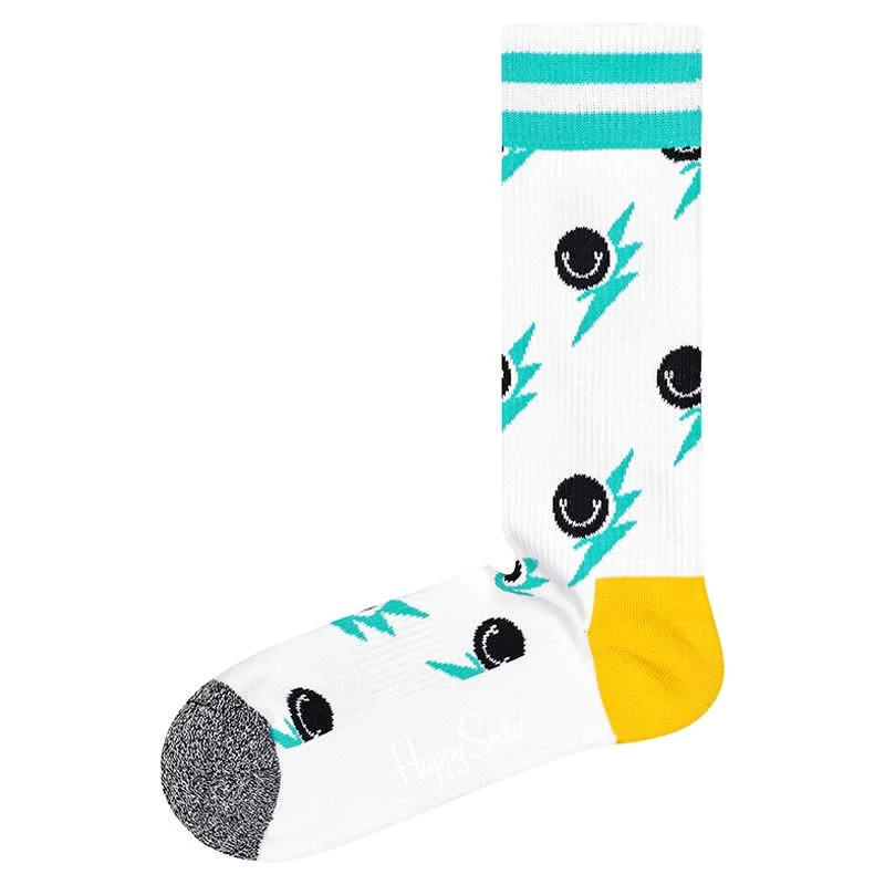 Manchmal verändert Humor den ganzen Tag. Mit diesen Smiley-Smiley Prints geht das sehr gut!Hol Dir selbst ein Paar oder verschenke eines an jemanden, der Dir am Herzen liegt! Aus gekämmter Baumwolle gefertigt, sind diese Socken für langanhaltenden Komfort gemacht. Die Happy Socks Smile Flash Crew Sock.