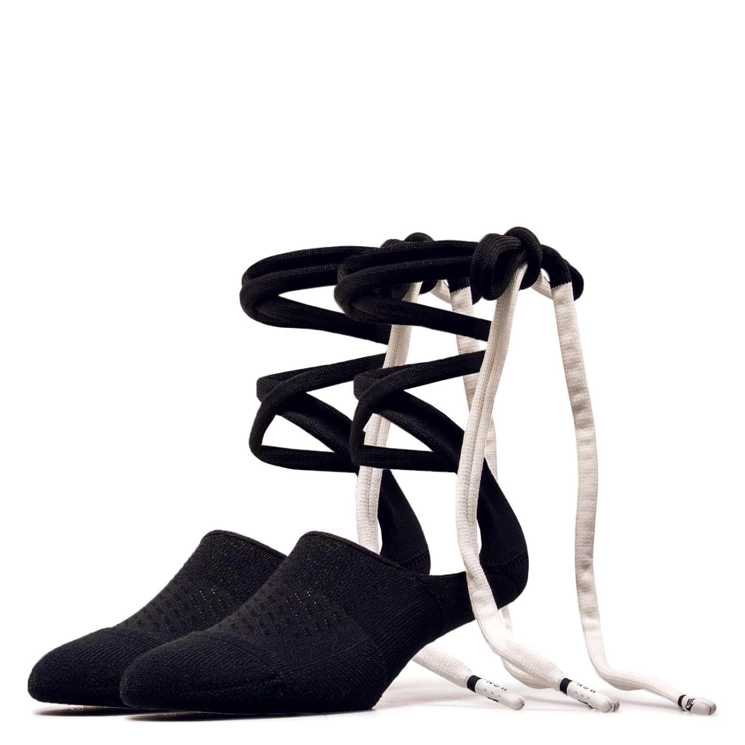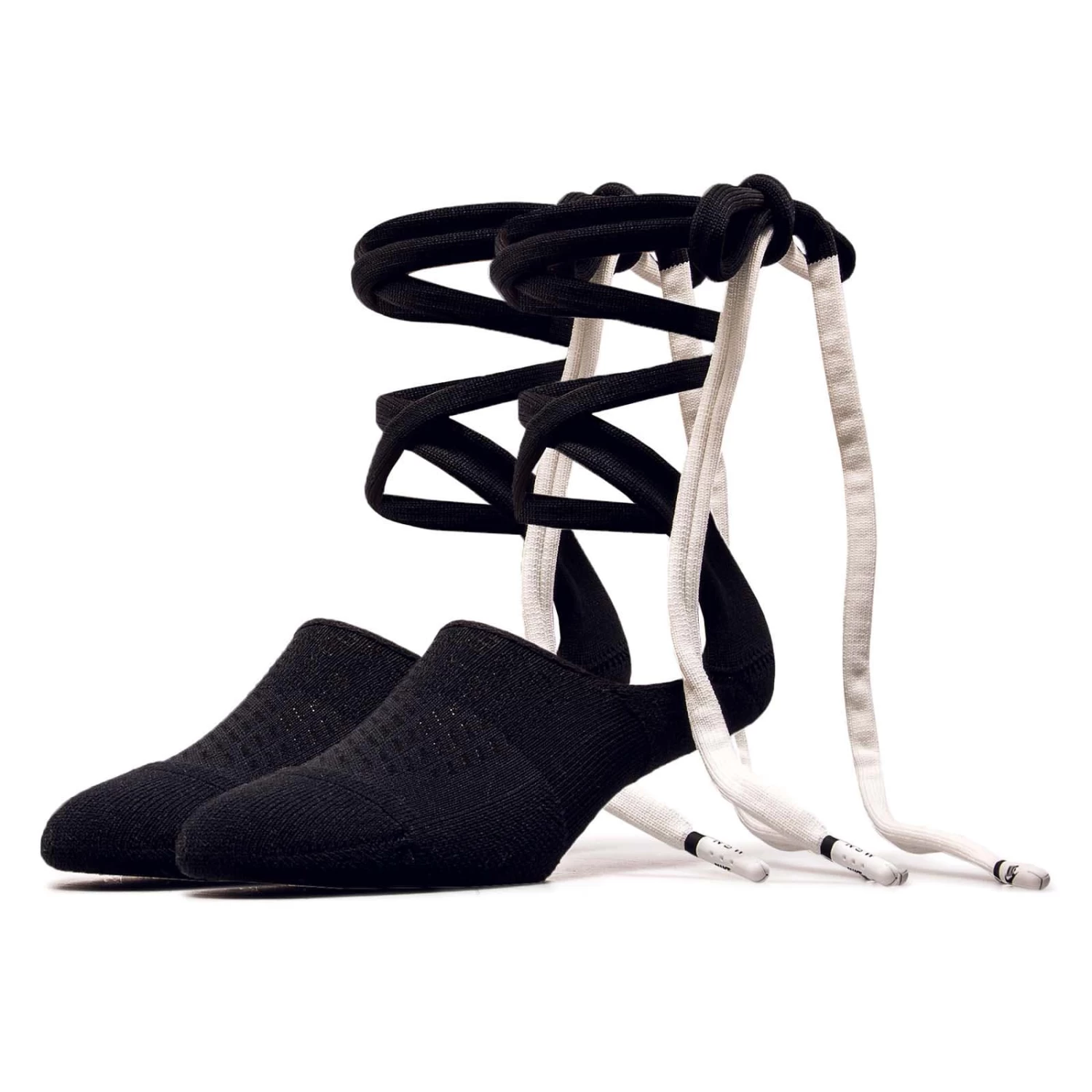 Die schwarz-weißen Socken von Nike präsentieren sich mit ihrer Schnürung um die Wade in einem außergewöhnlichen Design. Der Low-Cut und die Polsterung an Hacken und Zehen sorgen für Komfort. Das Nike-Logo an den Zehen setzt den finalen Akzent.