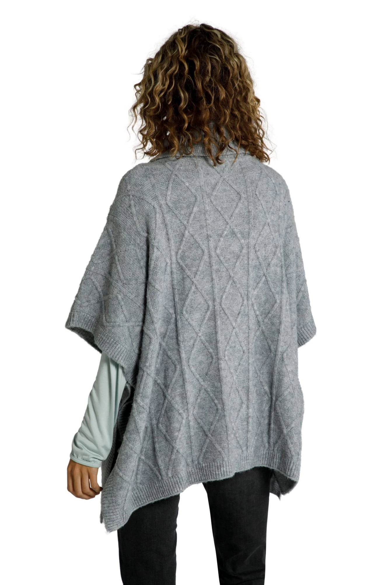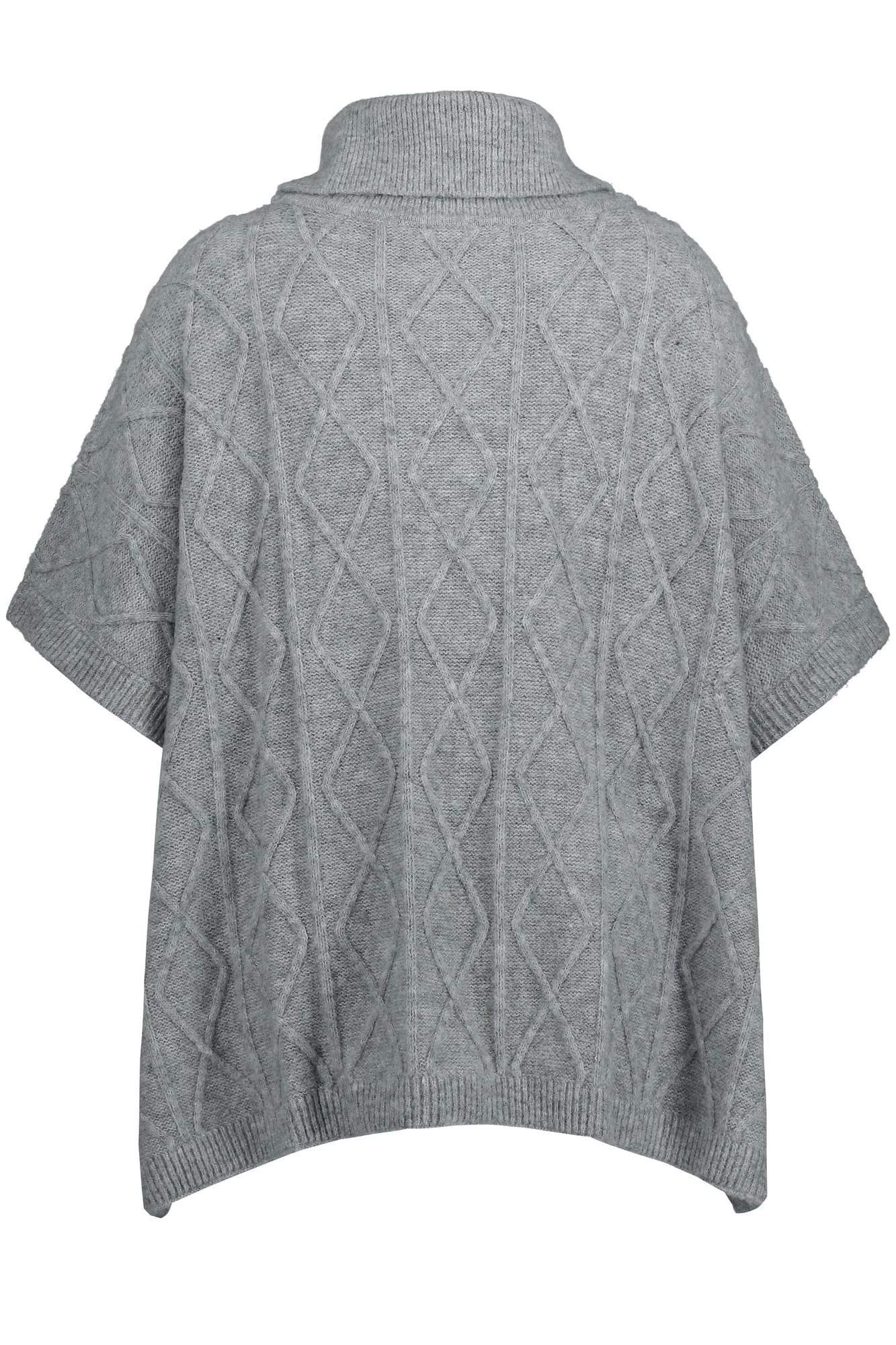 Poncho, oversized, aus weichem Feinstrick mit Zopfmustern. Weiter Rippkragen, breit überschnittene Schultern, lange Seitenschlitze. Rippbündchen.
